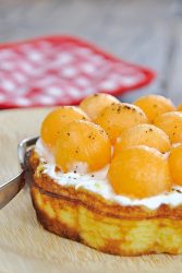 Garnis les alvéoles de chaque gaufre de cette préparation puis de billes de melon. C’est prêt !
