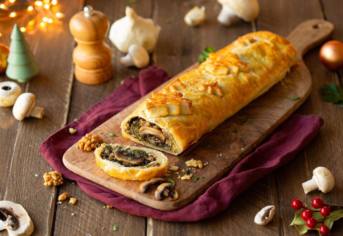 Les fêtes, c’est aussi l’occasion de s’amuser avec les dressages, les textures, les trompe-l’œil, les associations sucré-salé. Et sans forcément passer des heures aux fourneaux. La preuve ! Commencez avec un wellington végétarien dans son manteau feuilleté, puis twistez le pot-au-feu traditionnel en remplaçant le bœuf par des champignons. Enfin, pourquoi ne pas déstructurer la bûche glacée classique en proposant une dame blanche en verrine ?