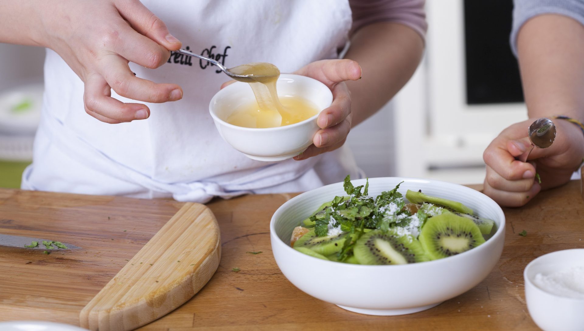 Impliquez votre enfant dès que possible dans la préparation du repas : presser une orange, mélanger une salade de fruit, laver les radis, positionner les rondelles de pommes sur une pâte à tarte, couper des légumes, ôter les pieds des champignons, effeuiller les endives, etc. Veillez à lui confier des tâches adaptées à sa motricité et à lui proposer, durant la préparation, de goûter les fruits et/ou les légumes qui peuvent être consommés crus.