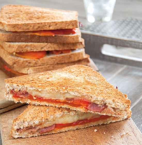 Douceur et saveur pour ce croque-monsieur au poivron. On vous recommande d’utiliser le poivron rouge, ou à la limite le jaune, le vert étant un peu plus amer. Le fromage de chèvre frais peut aussi avantageusement remplacer le fromage de brebis.