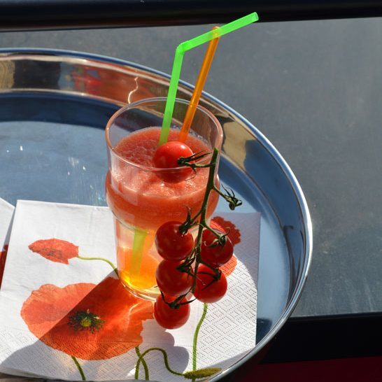 Plus surprenant mais tout aussi rafraîchissant : la tomate adore devenir l’élément principal d’un cocktail sans alcool. Un délice.