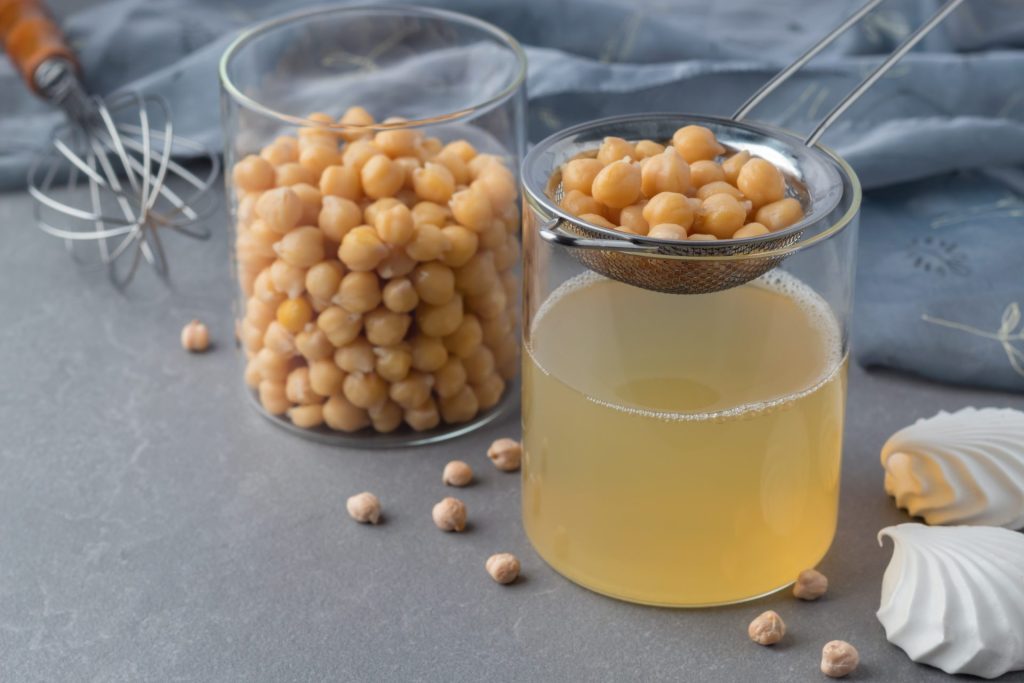 L’aquafaba permet de réaliser de fabuleuses meringues ou des macarons sans la moindre trace de blanc d’œuf, à partir de l’eau de cuisson de légumes secs (pois chiches, haricots ou fèves). Cette eau contient en effet une partie des protéines des légumes dissoute dans l’eau. On la fait monter en neige comme des blancs d’œufs, au fouet électrique.