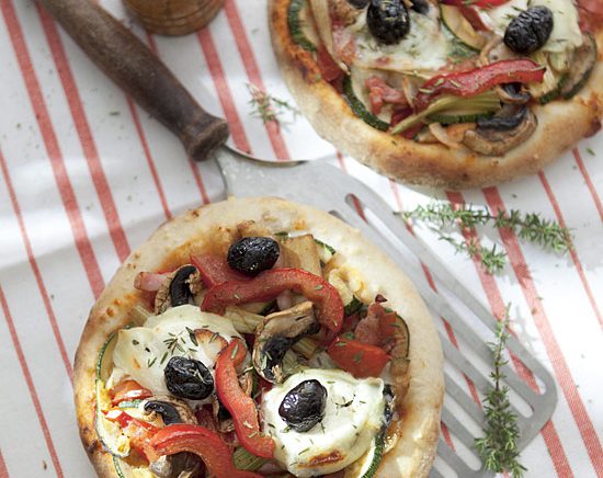 - Pour la garniture, commencez par la base : sauce tomate ou crème fraîche et mozzarella. Pour les légumes, le choix est vaste : tomates, champignons, oignons, artichauts, poivrons, aubergines, brocolis, roquette… Enfournez à la température maximum de votre four, 250 °C dans l’idéal. Une fois cuite, parsemez votre pizza de basilic.