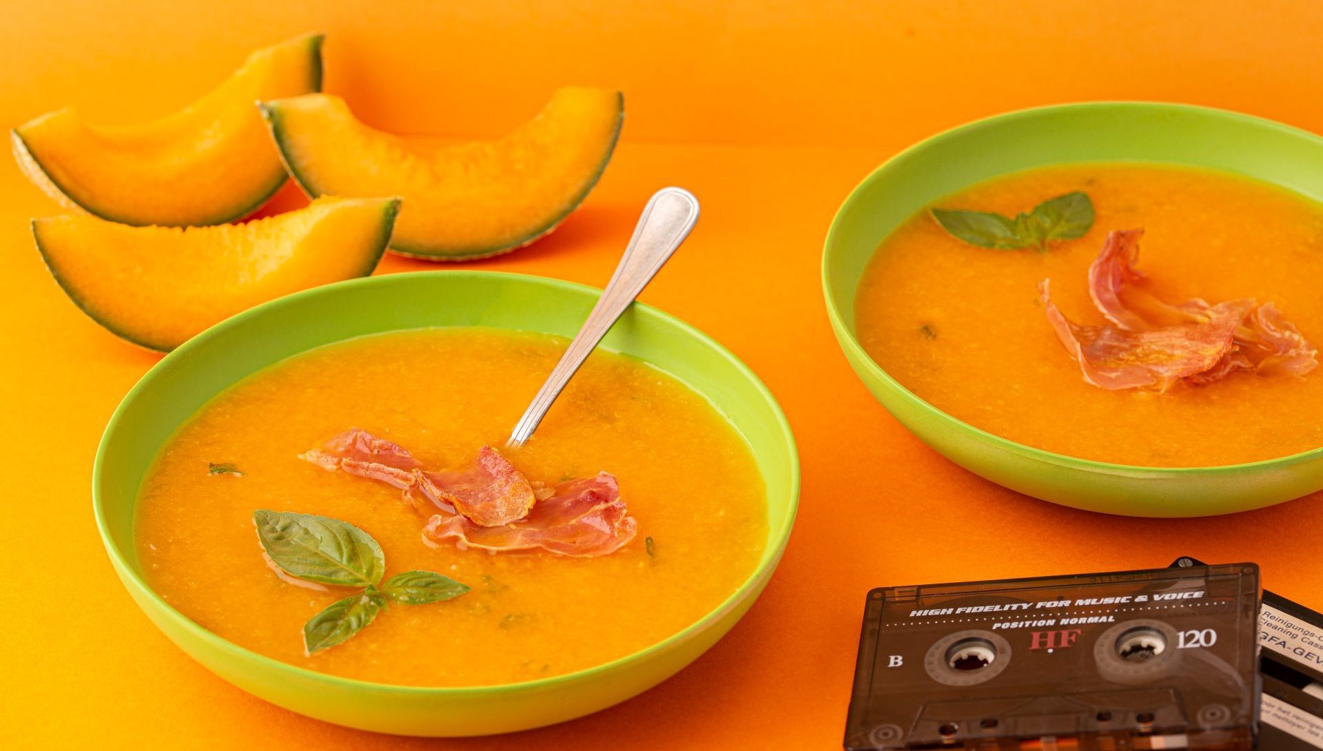 1. Couper le melon en deux et retirer les graines. Le couper en tranches et retirer la peau. Tailler les tranches de melon en morceaux.