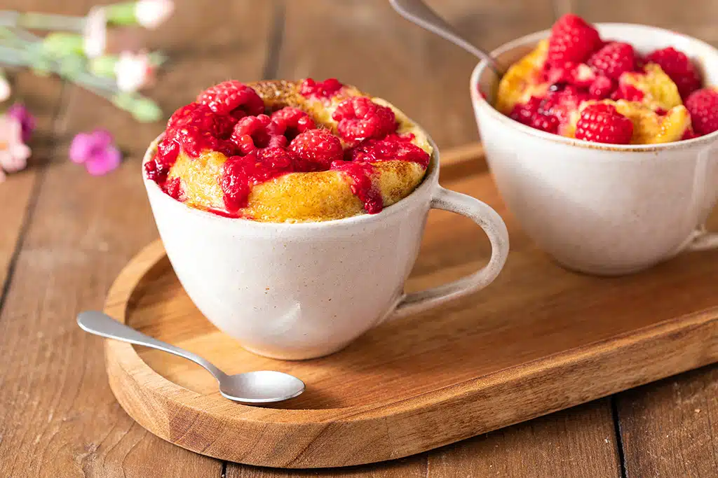 Le dessert : merci les gâteaux ! En mode mug cake aux framboises ou sponge cake à l’orange, voilà qui est vite fait et bien bon !