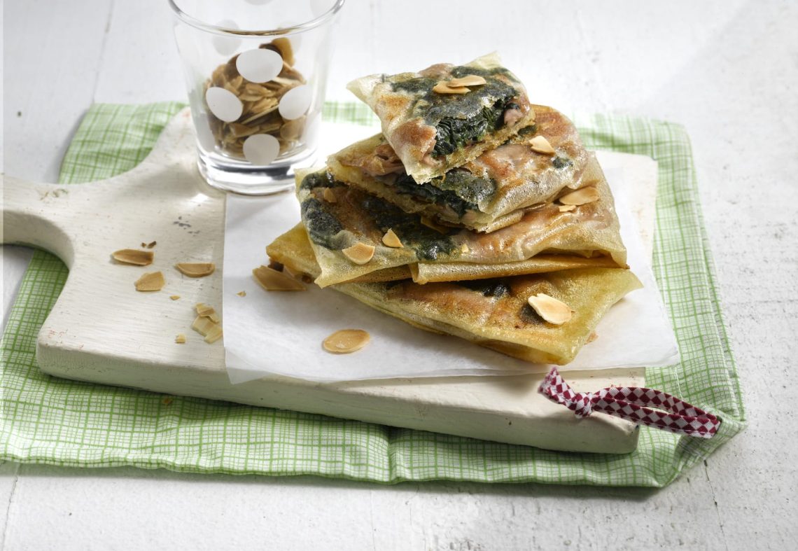 Tu peux ensuite te régaler avec des penne aux brocolis croquants et pétales de parmesan, un cheeseburger aux légumes ou bien des bricks à l’épinard, au jambon et aux amandes.