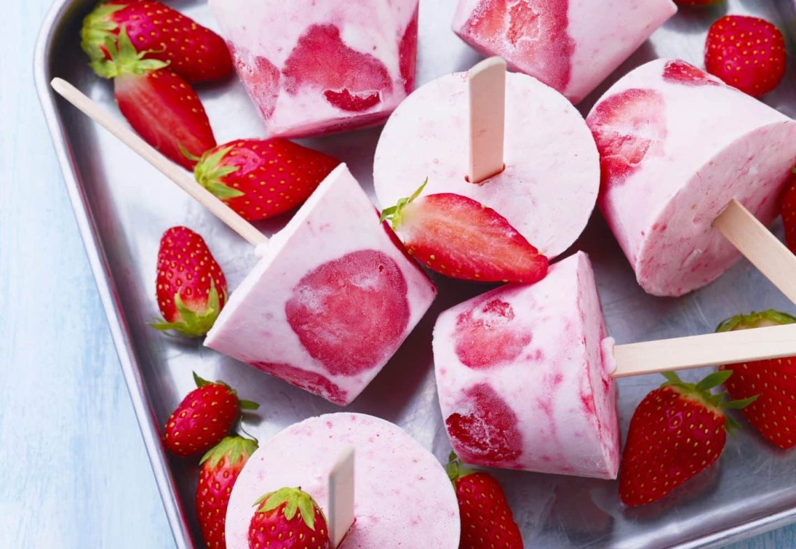 - la glace préparée à partir d’un sorbet aux fruits, en remplaçant l’eau par le même volume de crème fraîche ou de yaourt, comme une glace aux fraises par exemple ;