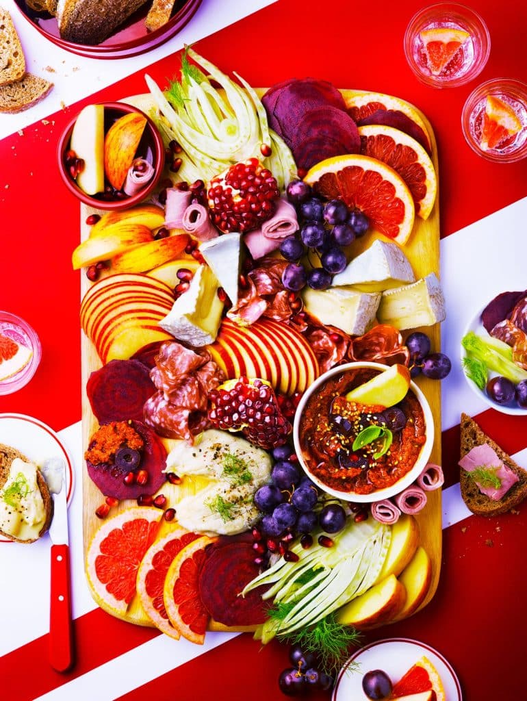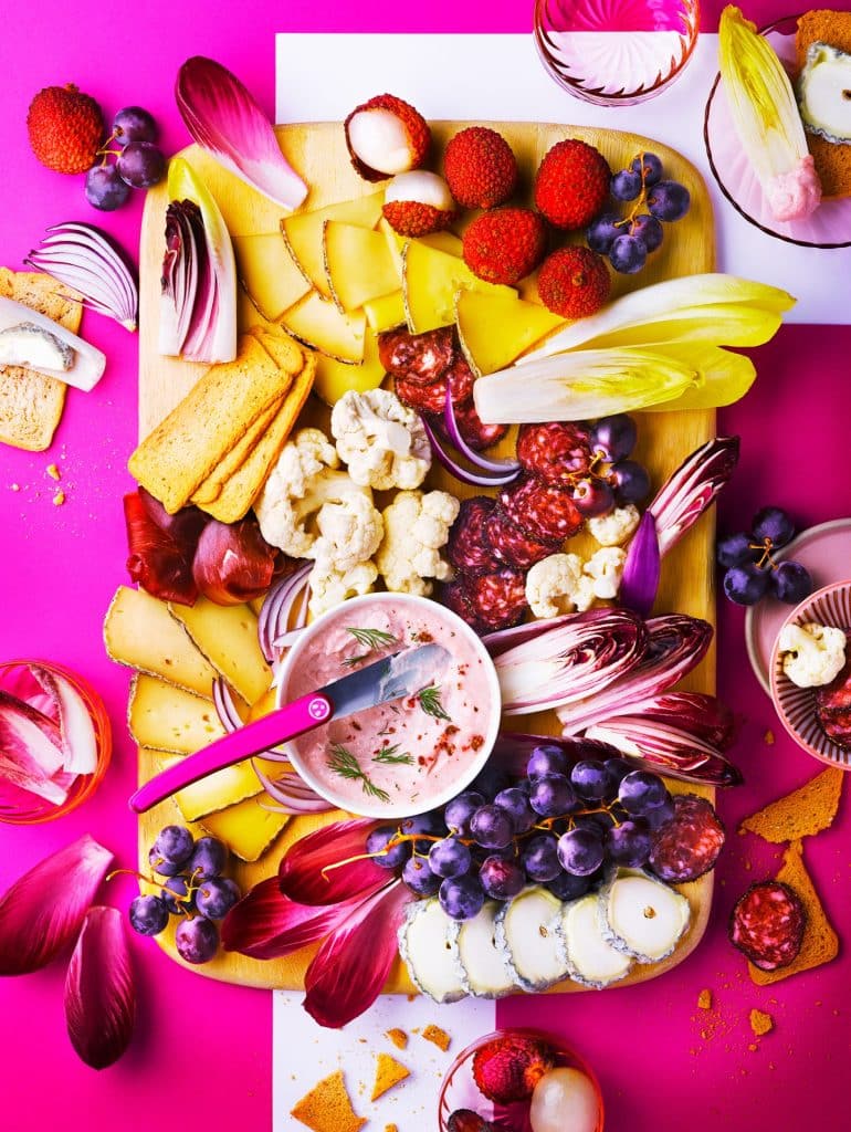 En mode végé, remplace la charcuterie par une tartinade betterave et chèvre et quelques grains de grenade.