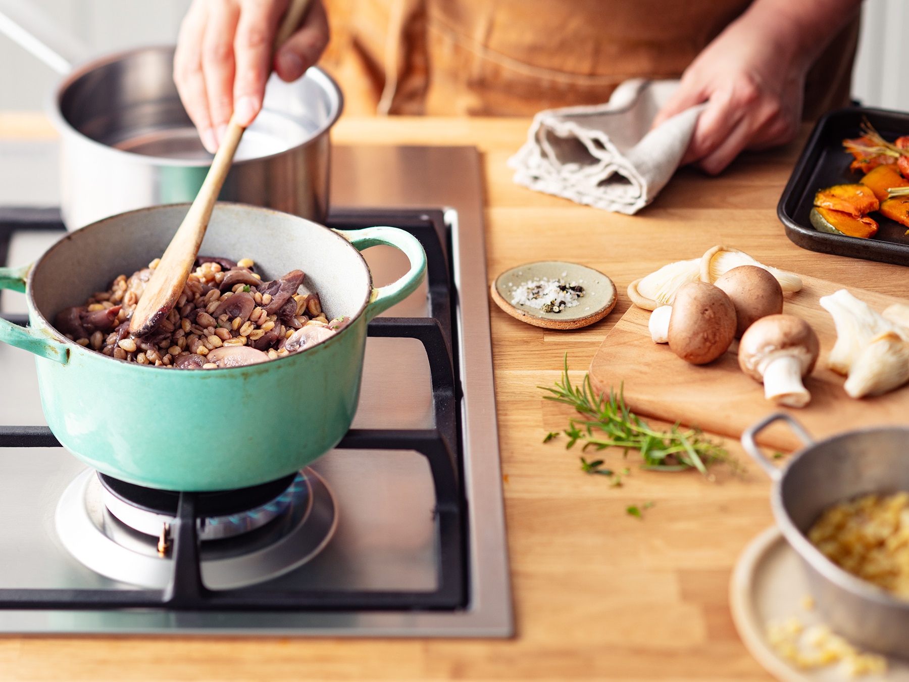 Mais vous pouvez aussi avoir simplement envie de cuisiner un délicieux plat mijoté sans viande ni poisson… Comme ce ragoût végétal de blé aux légumes rôtis.