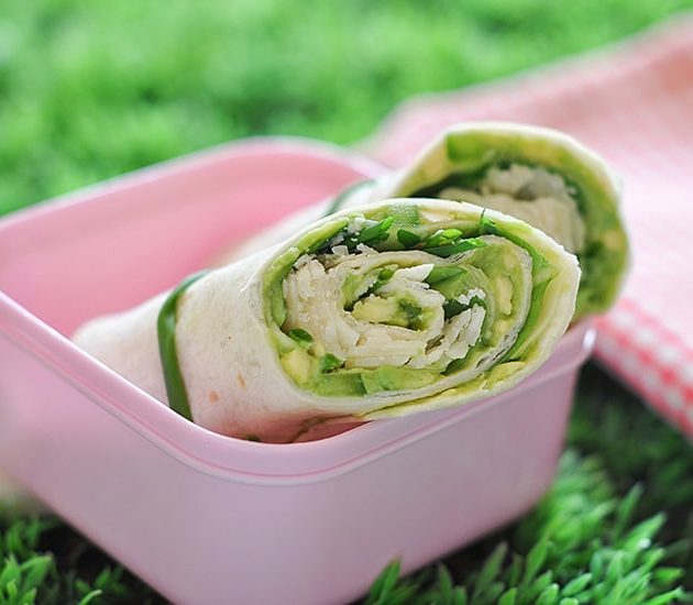 Tartinez le pain de chair d’avocat citronnée écrasée. Choisissez de préférence du pain de mie, plus facile à manger pour les petits que de la baguette ou du pain de campagne. Emincez une escalope de poulet (cuite vapeur, pochée ou rôtie à la poêle) et garnissez-en le sandwich.
