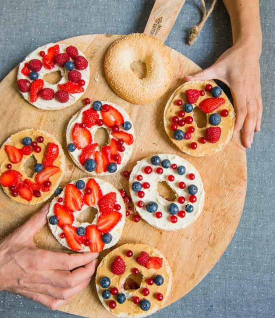 Bagel avocat fromage frais pois chiche crevette aneth, citron