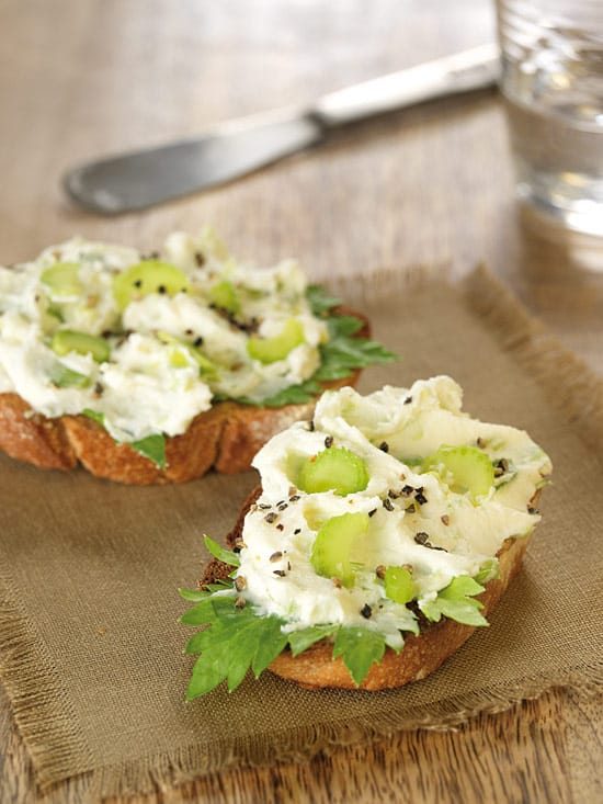 Garnissez les tartines salées (concombre, courgette, pomme, poire, etc.) de fromage frais aux herbes, de tarama, de confit de tomates, de purée d’olives ou de tapenade, de houmous (purée de pois chiche et pâte de sésame), de pesto, de fromage persillé (bleu, roquefort, etc.), de fromage de chèvre.