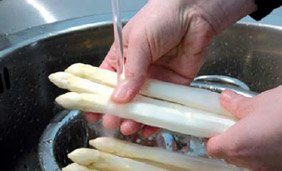 Rincez les asperges sous l’eau et séchez-les sur un linge ou sur du papier absorbant.
