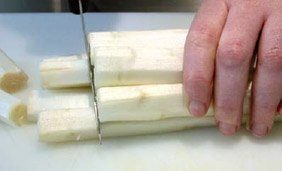 Coupez la base ligneuse des tiges pour égaliser la taille des asperges.
