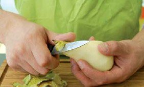 Épluchez la poire de manière à maintenir sa forme régulière.