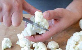Divisez la pomme du chou-fleur en bouquets réguliers.