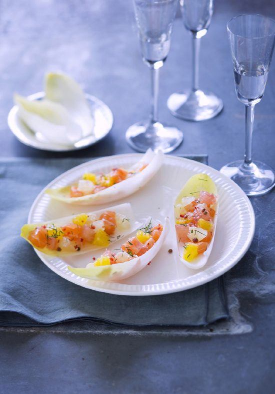 Bouchées d'endives au saumon frais et dés d'agrumes