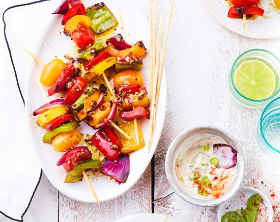 - Sur des piques à brochettes, alterner des rondelles de pommes de terre lardées de bacon et des morceaux de poivrons.