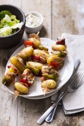 Brochettes de pomme de terre, poivron et bacon