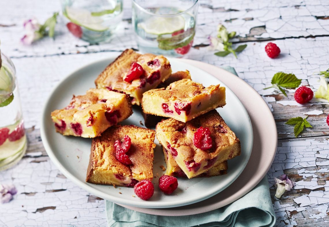 - Mélanger le sucre et les œufs.Ajouter la farine et mélanger. Verser le chocolat blanc fondu et remuer. Ajouter es framboises et mélanger. Verser la préparation dans un plat.