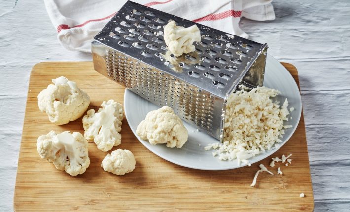 - Laver le chou-fleur. Le râper à l’aide d’une râpe à gros trous. Éplucher l'oignon et l’émincer finement.