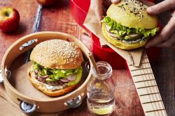 10. Monter les burgers. Déposer le steak de veau haché, les lamelles d’avocats, les rondelles de radis, les courgettes grillées et finir par la feuille de batavia. Refermer le burger et déguster aussitôt !