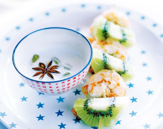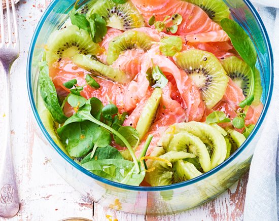 - Peler les kiwis. En tailler deux en dés et le dernier en fines tranches. Réserver.