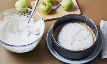 - Démouler le cheesecake, répartir la compote de pommes sur le dessus et déguster sans plus attendre avec du caramel au beurre salé.