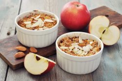 - Dans 4 ramequins individuels, répartir les pommes cuites et par-dessus les biscuits émiettés.