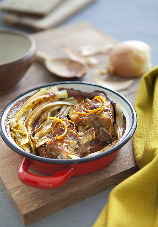 5. Servir ensemble les travers et les endives confites à l'orange.
