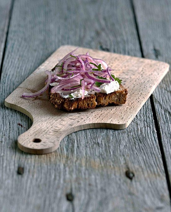 - Garnissez généreusement la tartine de l’oignon ciselé et assaisonné.