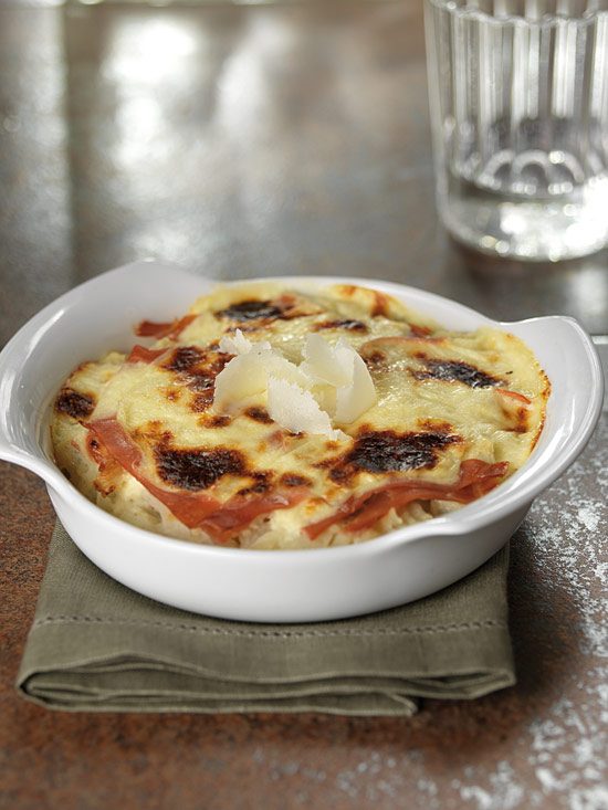 • Mettre à gratiner sous le gril du four environ 5 min. Inutile de saler cette préparation, le jambon et le parmesan s'en chargent.