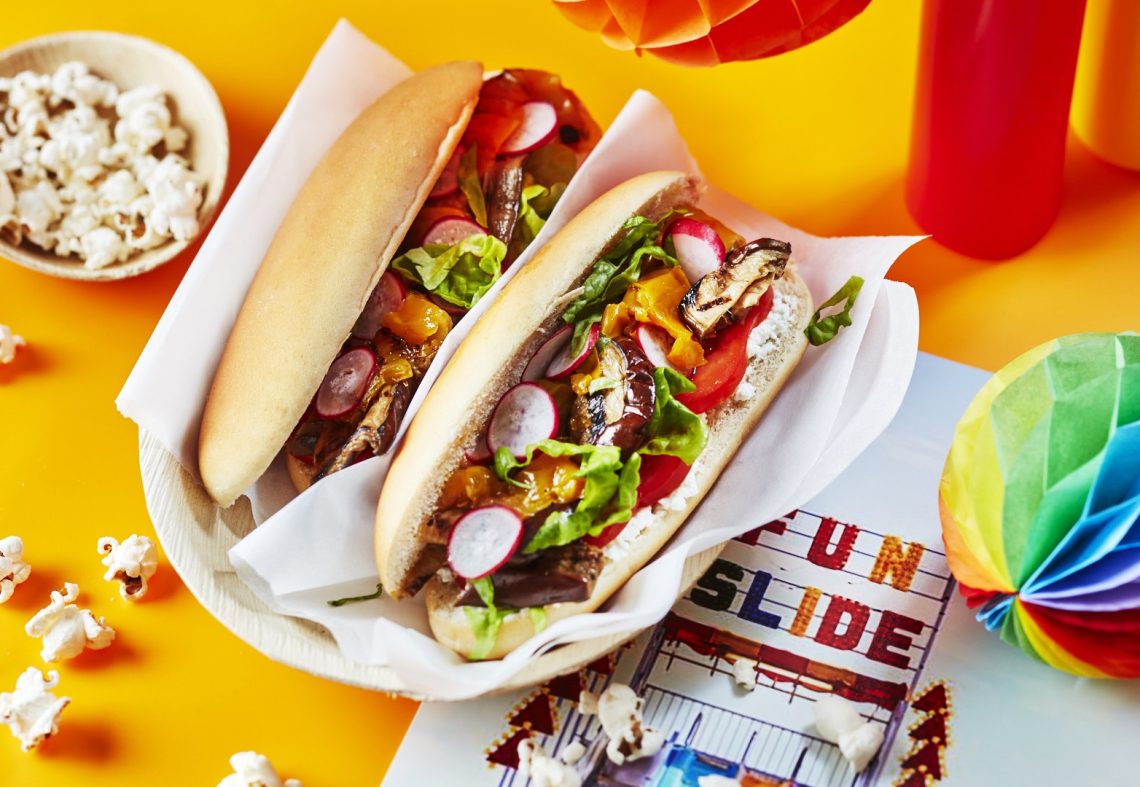 - Ouvrir les pains à hot dog et répartir le fromage frais.