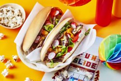 Hot dog végétarien aux crudités et aux légumes grillés