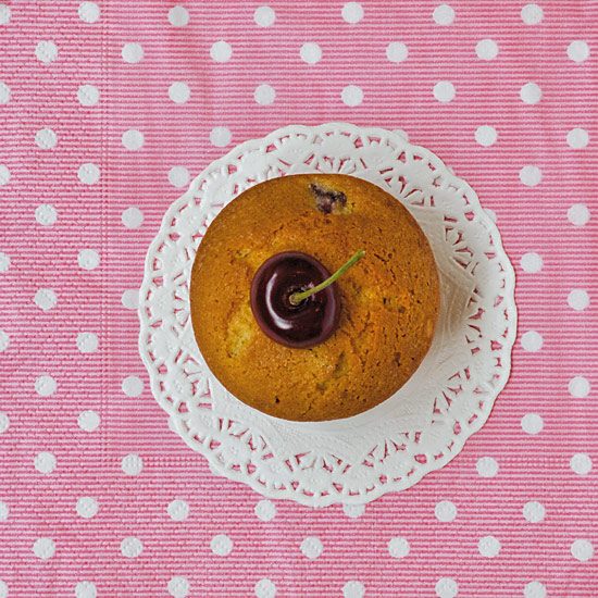 5. Laisse refroidir avant de démouler les muffins et décore-les en posant au centre de chaque gâteau une demi-cerise crue.