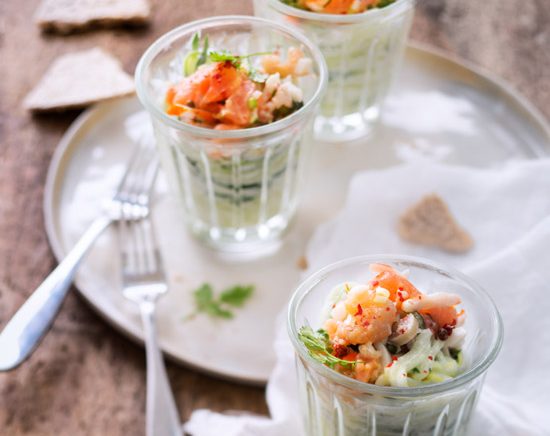- Dressage: au centre de l’assiette, placer une crêpe. Déposer dessus un œuf poché surmonté de glace. Entourer de pickles et décorer de cordifole.