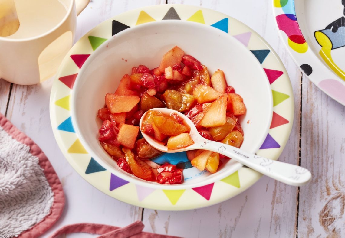 - Laver, dénoyauter et couper les prunes en morceaux.