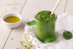 Ce pesto se conserve au réfrigérateur une bonne semaine.