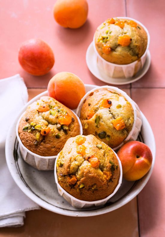Petits gâteaux moelleux à l’abricot huile d’olive et pistaches