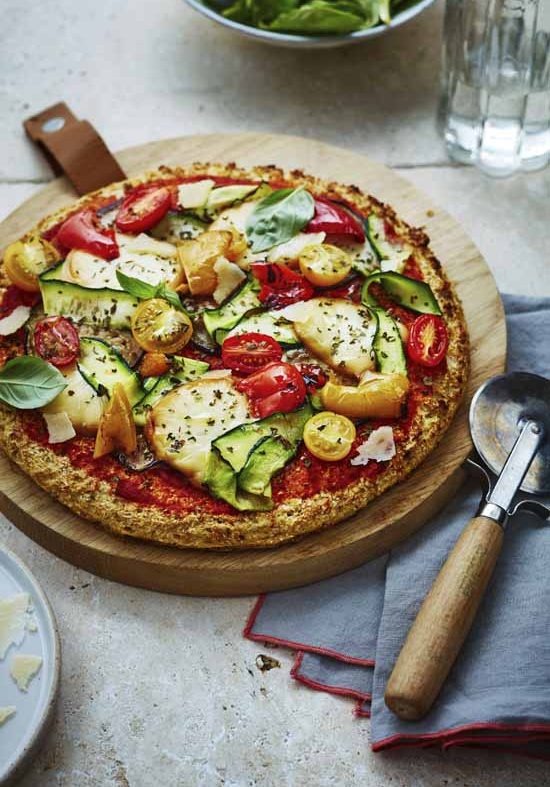 Pizza aux légumes grillés et scamorza (pâte au chou-fleur)