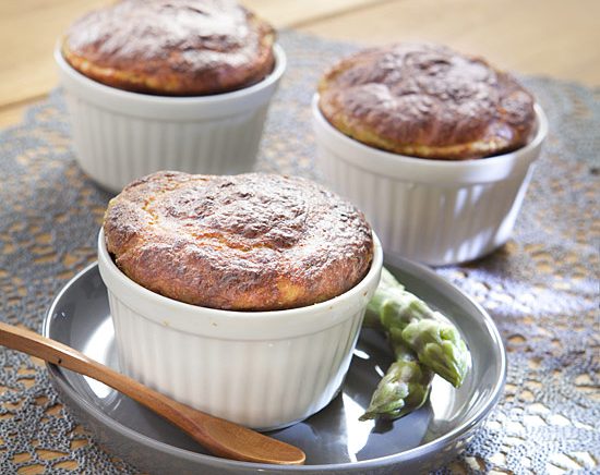 • Laver les asperges puis les plonger dans une eau bouillante salée environ 10 min. Les rafraîchir dans une eau glacée puis les égoutter. Les tailler ensuite dans la longueur puis en tronçons.