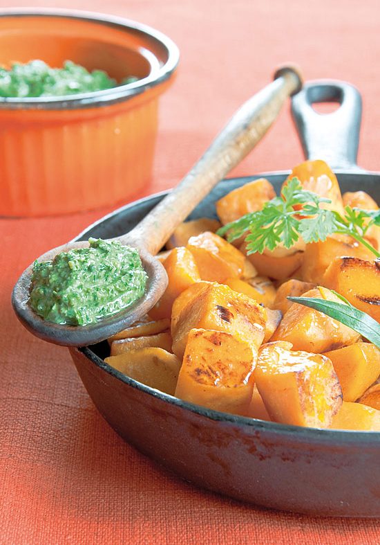 Poêlée de potiron sauté, pesto aux herbes et aux noix