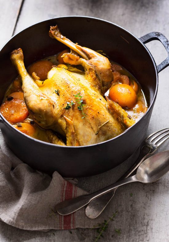 - Déguster le poulet aux abricots et au cidre bien chaud accompagné de riz blanc et parsemer de coriandre fraîche ciselée juste avant de servir.