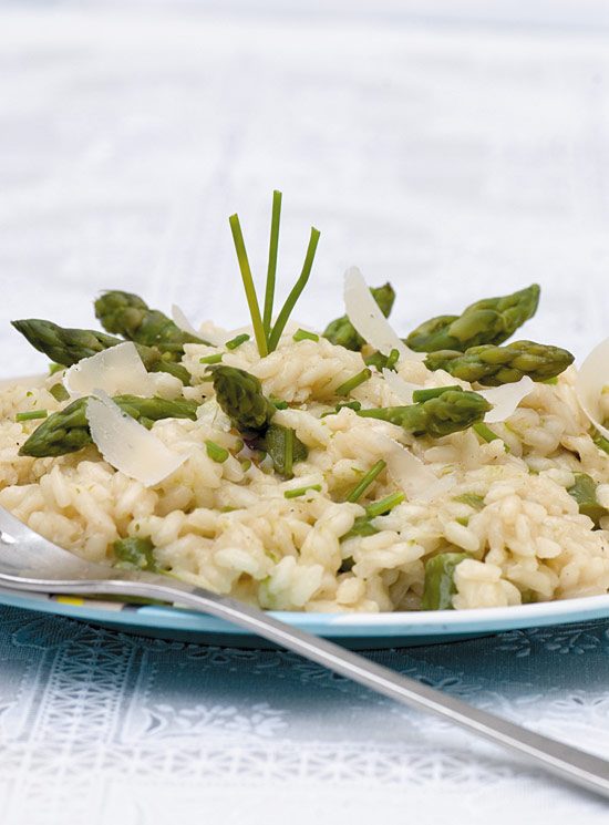- Déposer sur le risotto les pointes d'asperge et parsemer de ciboulette ciselée. Servir sans attendre.