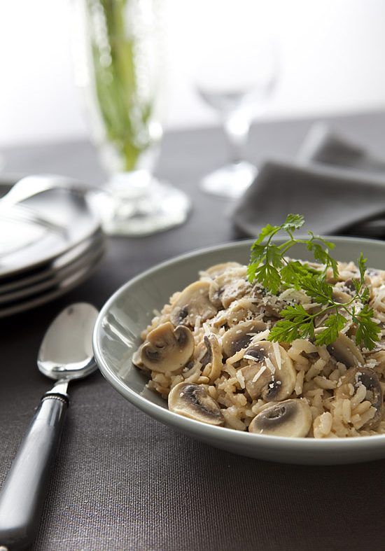 - Verser dans le riz le vin blanc et cuire jusqu'à ce que le vin soit totalement absorbé par le riz. Ajouter les champignons.