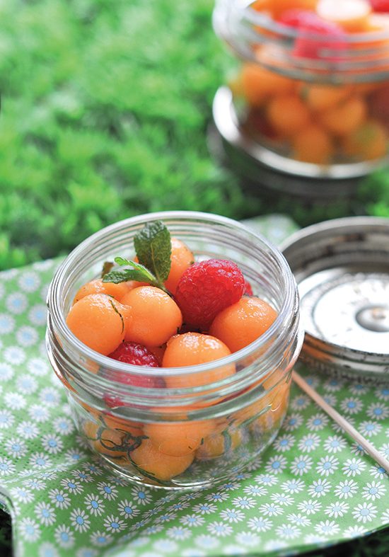 - Dans un saladier, déposer les billes (ou les dés) de melon, les framboises et citronner.