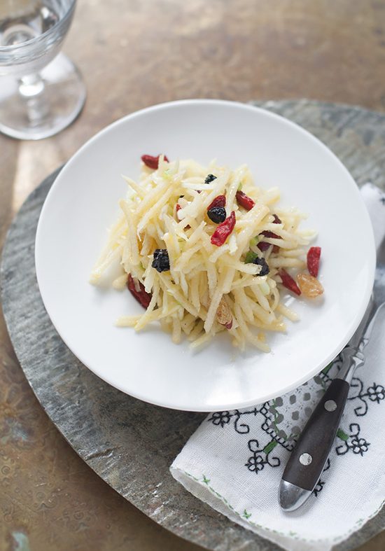 - Assaisonner le rutabaga et la pomme râpés avec cette sauce puis ajouter les raisins secs. Bien mélanger avant de servir.