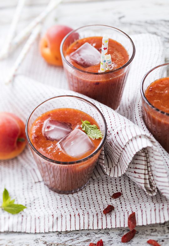 - Les déposer dans le bol du blender avec le gingembre râpé puis mixer. Ajouter les baies de goji et leur jus de trempage, quelques feuilles de menthe et mixer à nouveau.