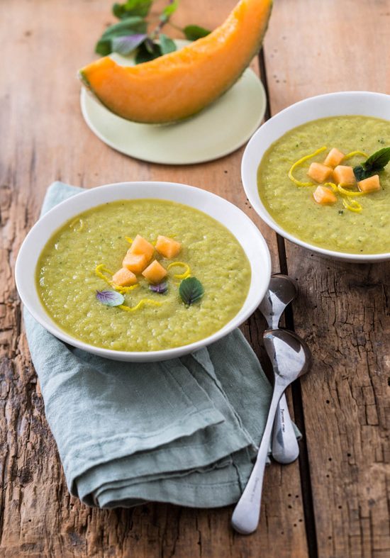 Ajouter quelques dés de melon au moment de servir, une feuille de menthe poivrée et des zestes de citron.