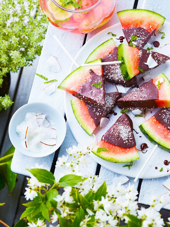 Sucettes de pastèque au chocolat